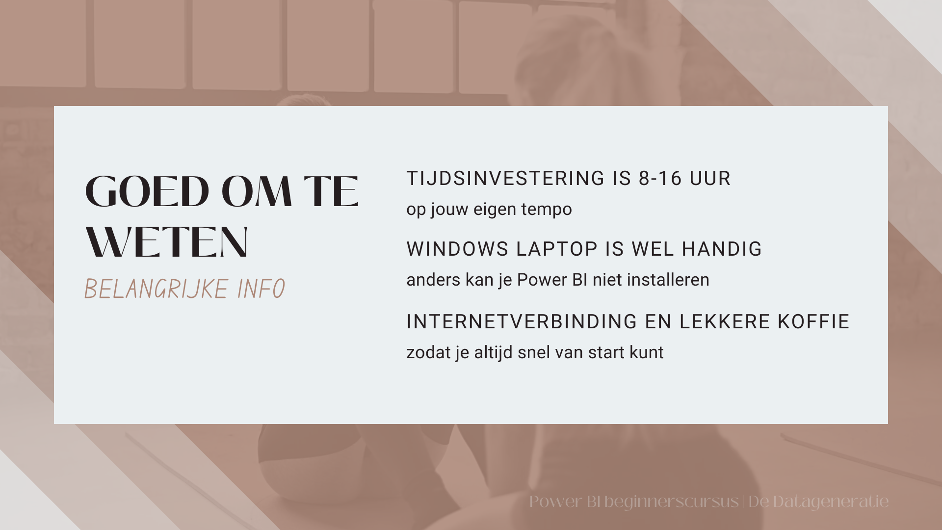 De cursus is ontworpen met de beginner in gedachten – geen voorkennis vereist! Deze digitale Power BI handleiding is precies wat je nodig hebt om succesvol te starten. De training wordt gegeven in het Nederlands en is volledig online, waardoor je in je eigen tempo kunt leren. Bovendien krijg je toegang tot een actieve community waar je vragen kunt stellen en je ervaringen kunt delen 💬. Ook als je de e-learning hebt afgerond.