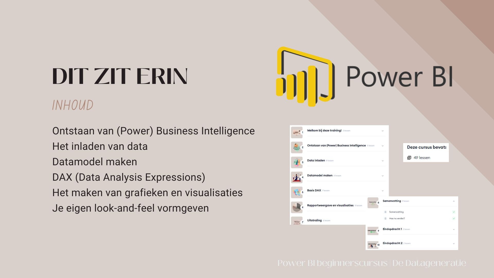 De cursus is ontworpen met de beginner in gedachten – geen voorkennis vereist! Deze digitale Power BI handleiding is precies wat je nodig hebt om succesvol te starten. De training wordt gegeven in het Nederlands en is volledig online, waardoor je in je eigen tempo kunt leren. Bovendien krijg je toegang tot een actieve community waar je vragen kunt stellen en je ervaringen kunt delen.